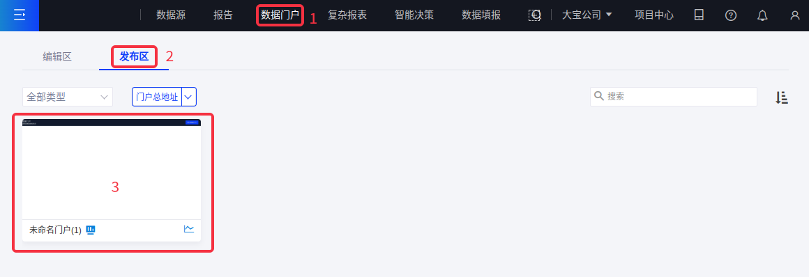 方法一:让目标用户登录本产品,在数据门户主页-发布区找到创建的门户