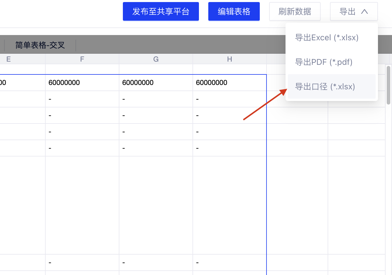 - 当前页面存在明细表分页时,仅导出当前页面数据
