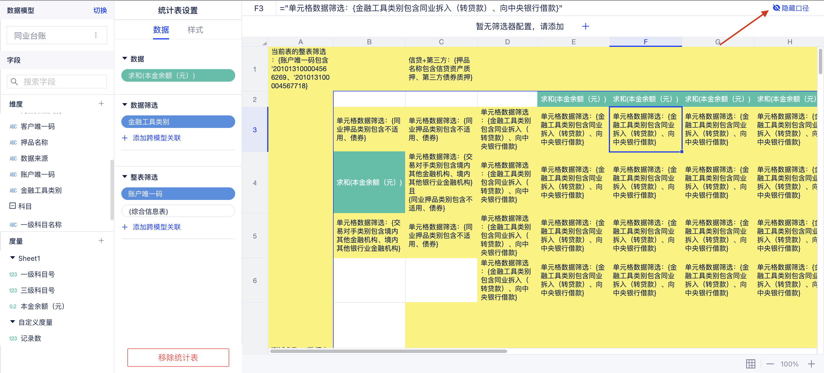 制表人可以在报表制作过程中,实时查看表格的筛选条件,方便排查问题,找到问题。