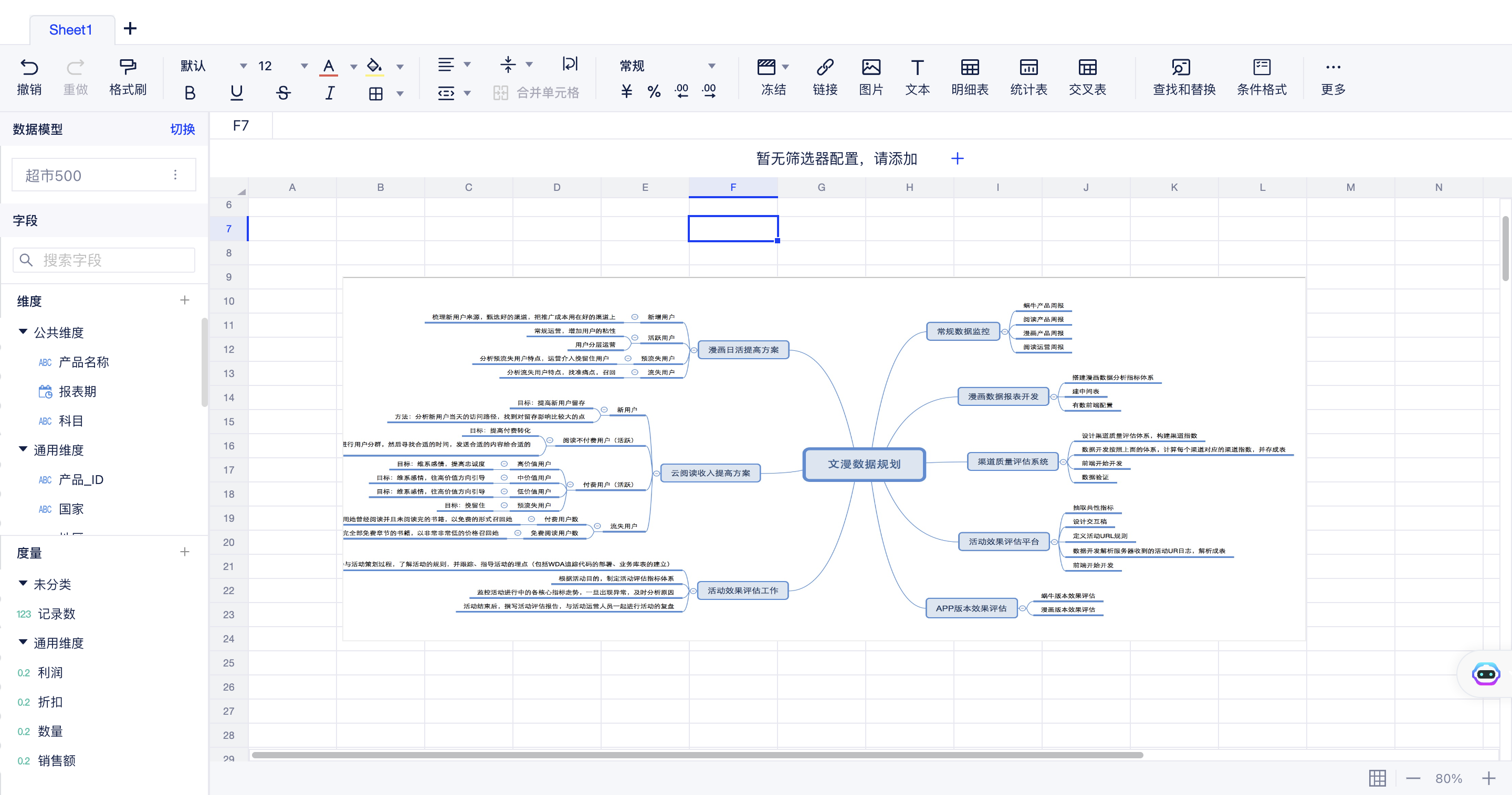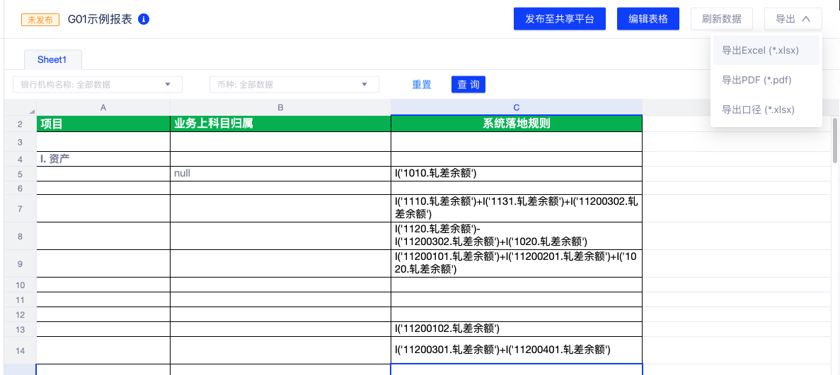 - 在表格中插入维度字段和全局参数,系统将会把对应内容写入对应单元格