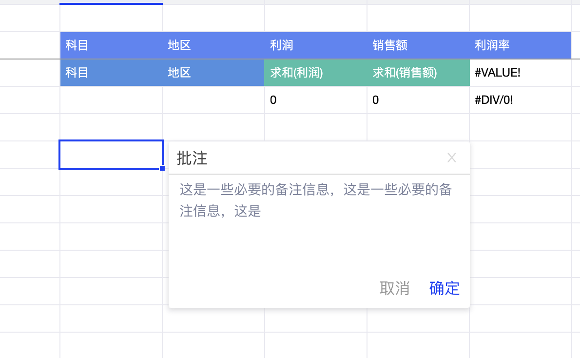 报表制作人员针对单元格输入备注信息,以便报表阅览者在查看报表时获得当前单元格的补充信息