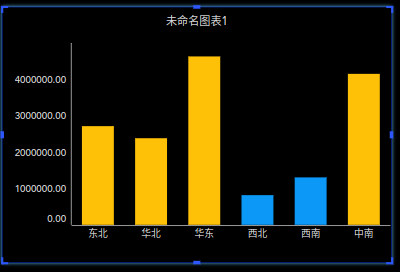 案例:下图以柱状图的地区销售额高亮提醒为例,把销售额地区的前三名做了高亮提醒,其中第一名蓝色、第二名白色、第三名红色。