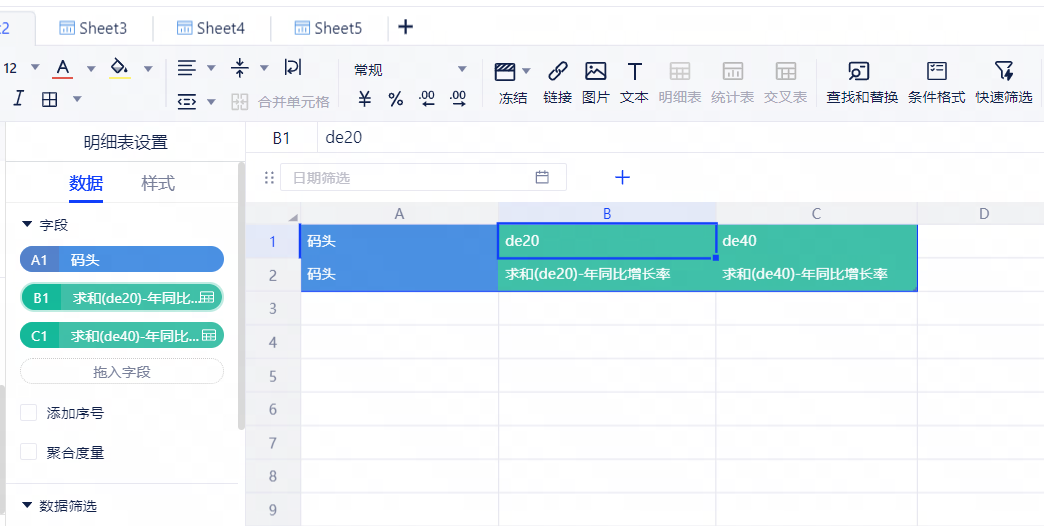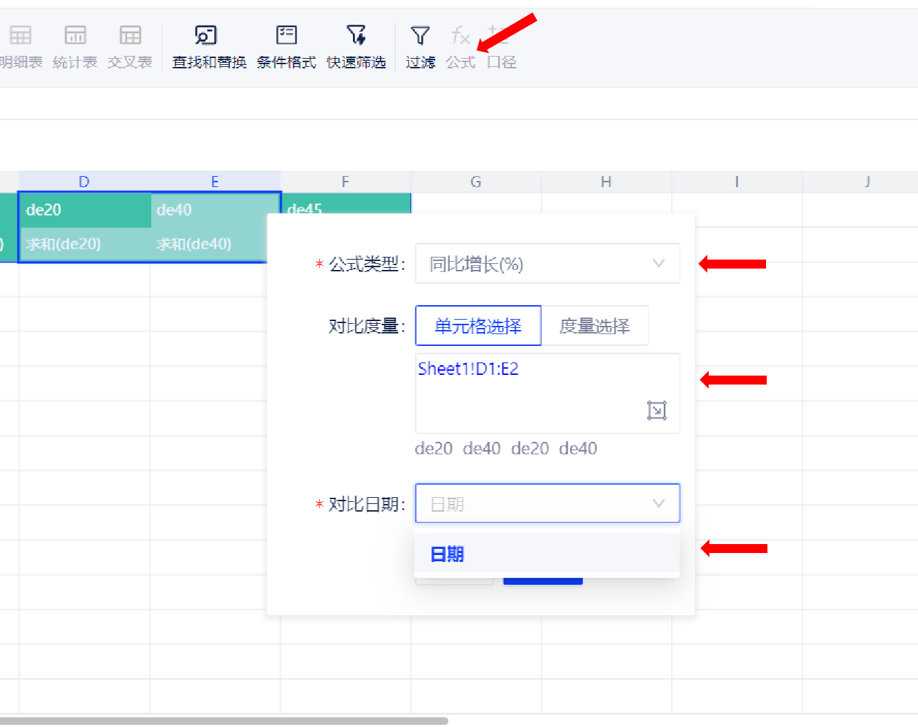 - 支持同比增长(%):计算和上年同期相比较的增长率
