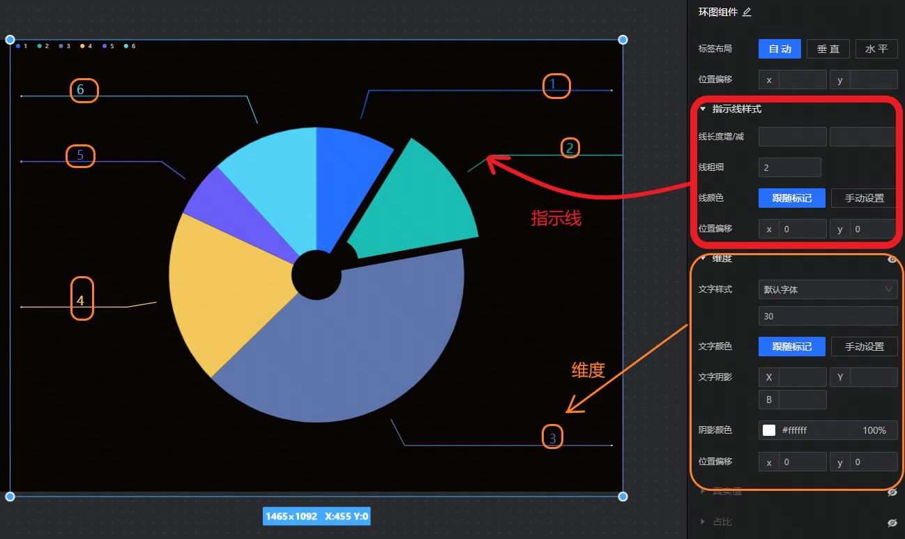 - 数据标签:设置环图上是否要展示数据标签,以及标签的文字样式。