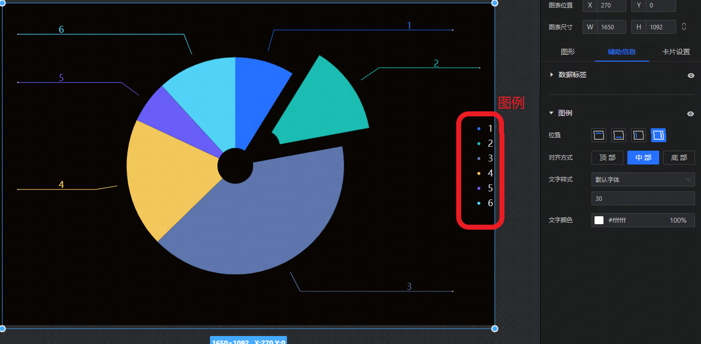 - 图例:设置环图是否要展示图例,以及图例的展示位置、文字样式。