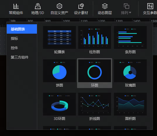 在编辑状态下点击环图组件即可对其进行配置,配置内容分为样式、数据和交互三个Tab。(本节仅介绍环图特有属性的配置,基础图表共性的配置请参考下文"组件配置")
