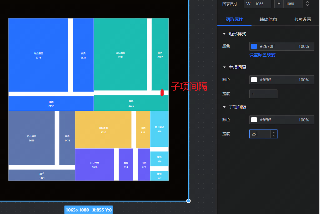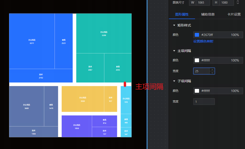 - 矩形样式:设置颜色、主项间隔和子项间隔。