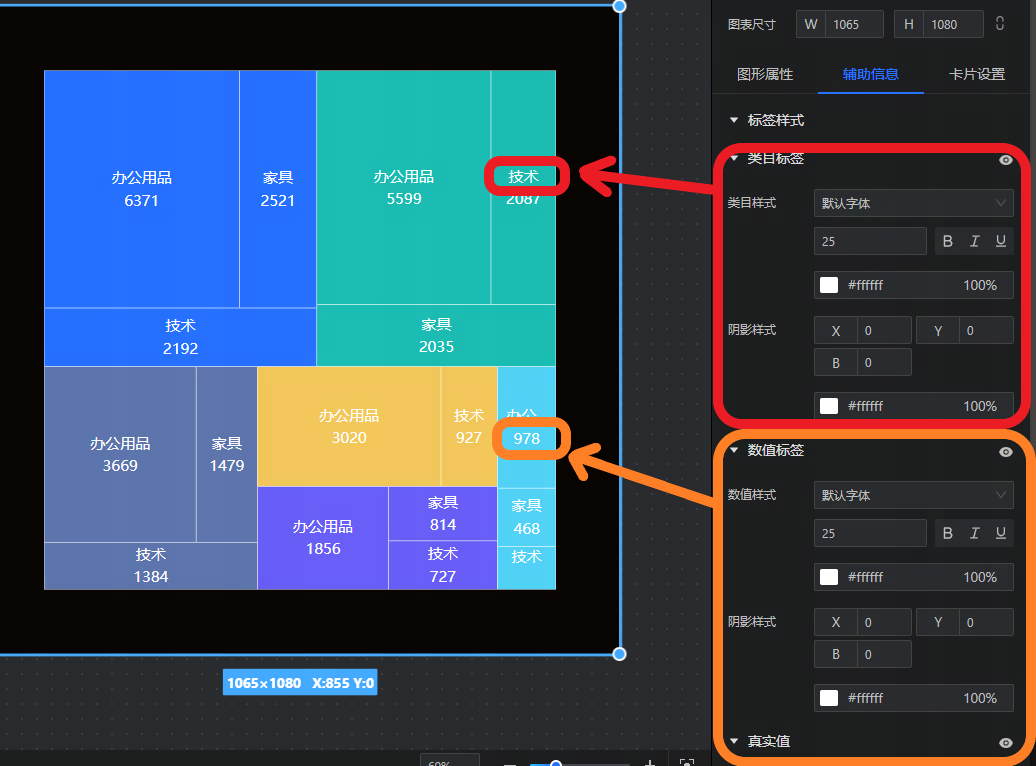 - 尺寸:设置矩形树图的度量字段,如下图所示为“销售额”。
