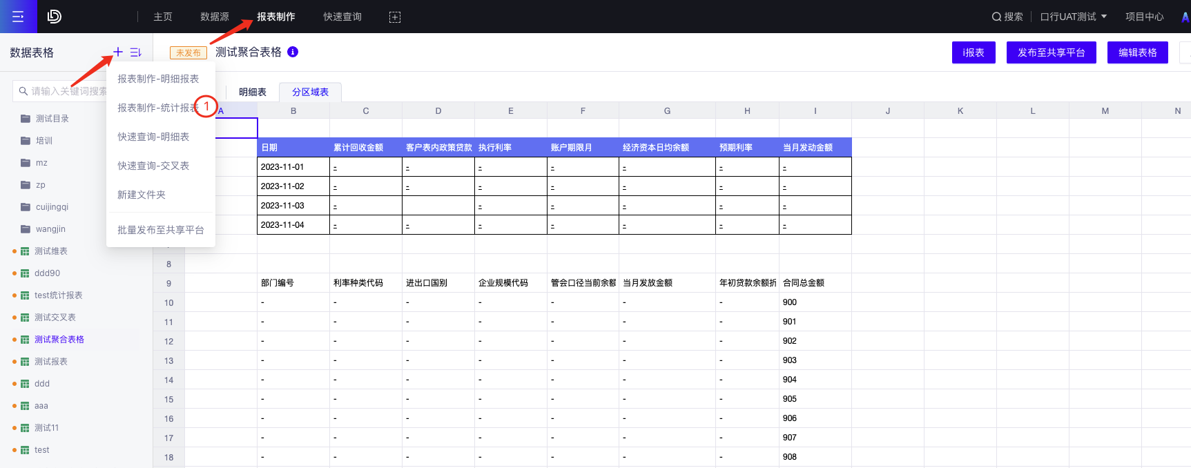(1) 进入报表制作模块,新建报表