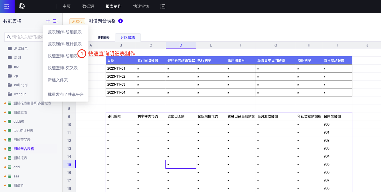 (1) 新建快速查询:进入快速查询报表制作模块