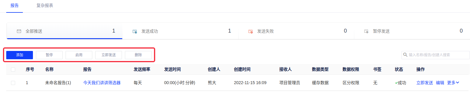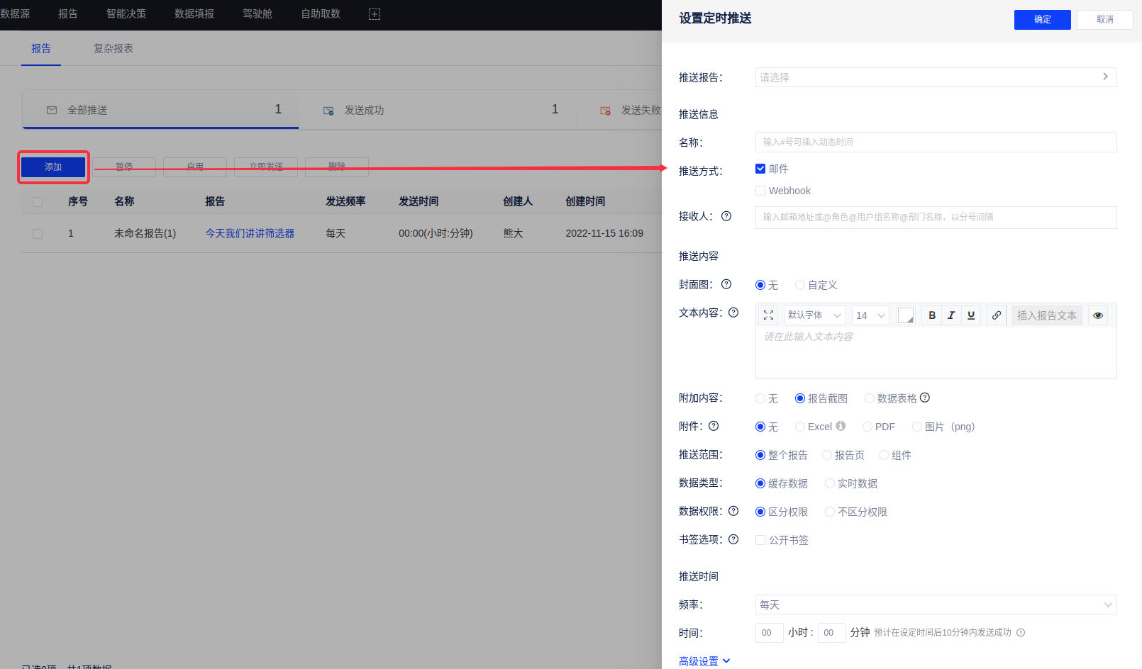 添加:新建一个推送任务,与设置报告推送功能一致。