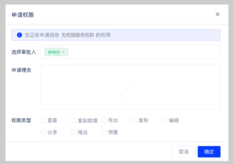 假设这么个场景,用户A点开某个报表的链接发现无权查看,随即找管理员授权,但管理员可能不清楚用户A适不适合看到这个报表。事实上让用户直接找有决策权的人申请权限才是最优解法,那么项目管理员只需要做两件事: