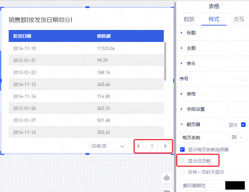 (2)表格支持显示翻页器,但翻页器不显示总页数;