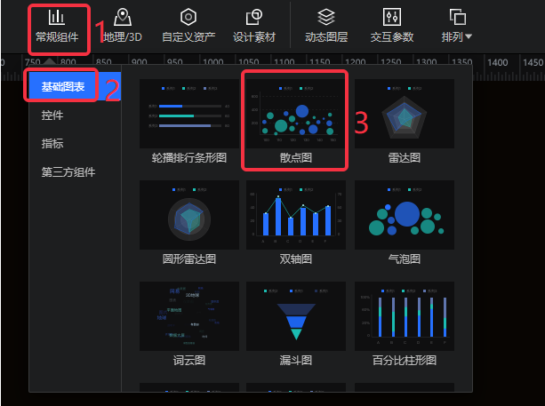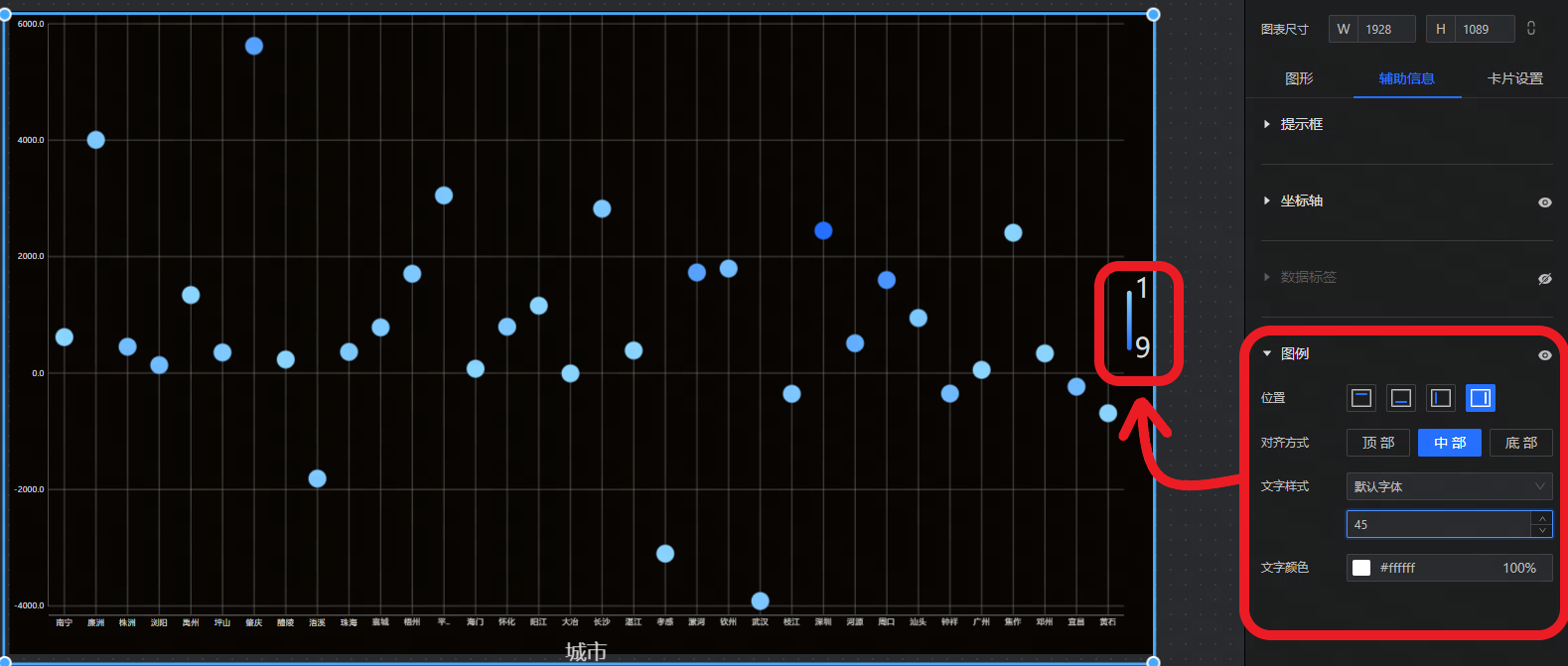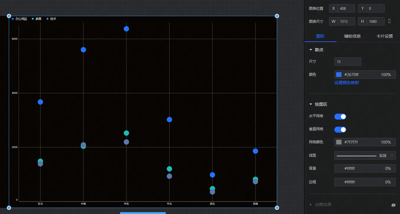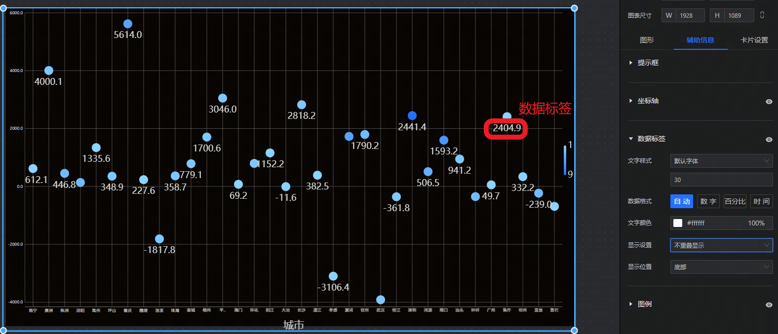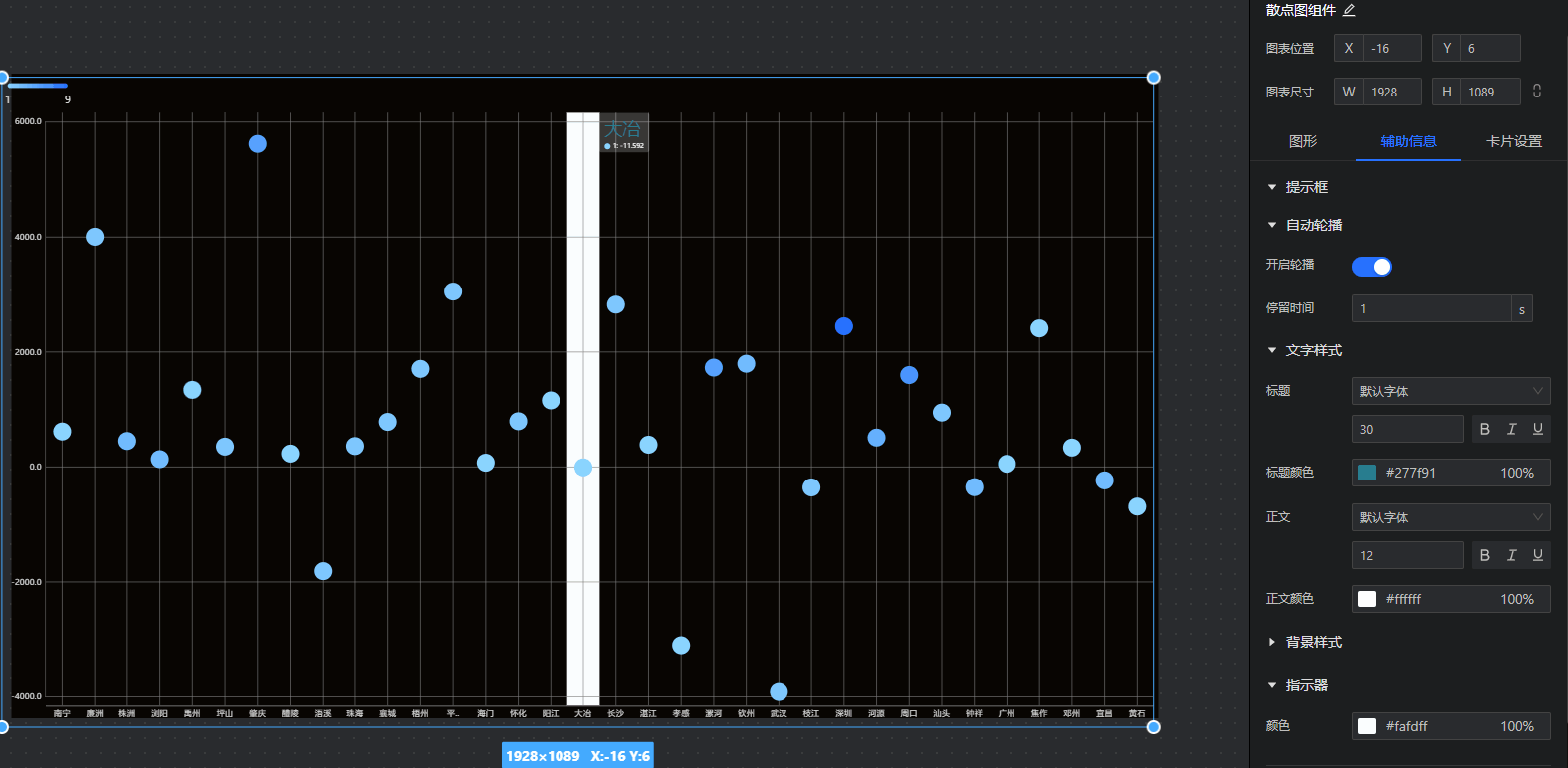 - 提示框:设置散点图提示框文字、背景、指示器及是否开启轮播。