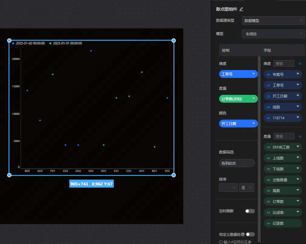 - 维度:设置维度字段,如下图中的“工单号”字段。