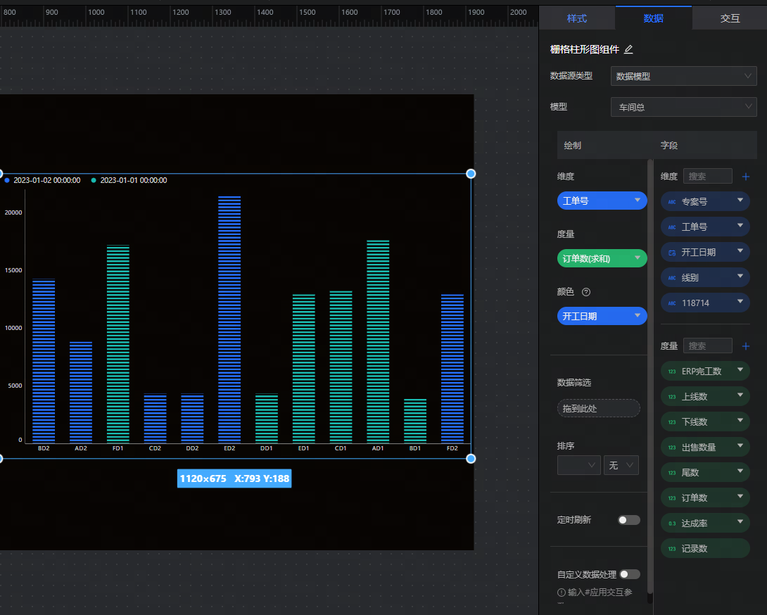 - 维度:设置维度字段,如下图中的“工单号”字段。