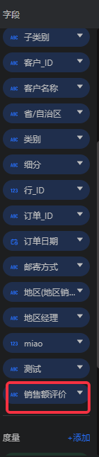 点击确定后,便可在字段列表区中的维度计算字段中看到新建的“销售额评价”。