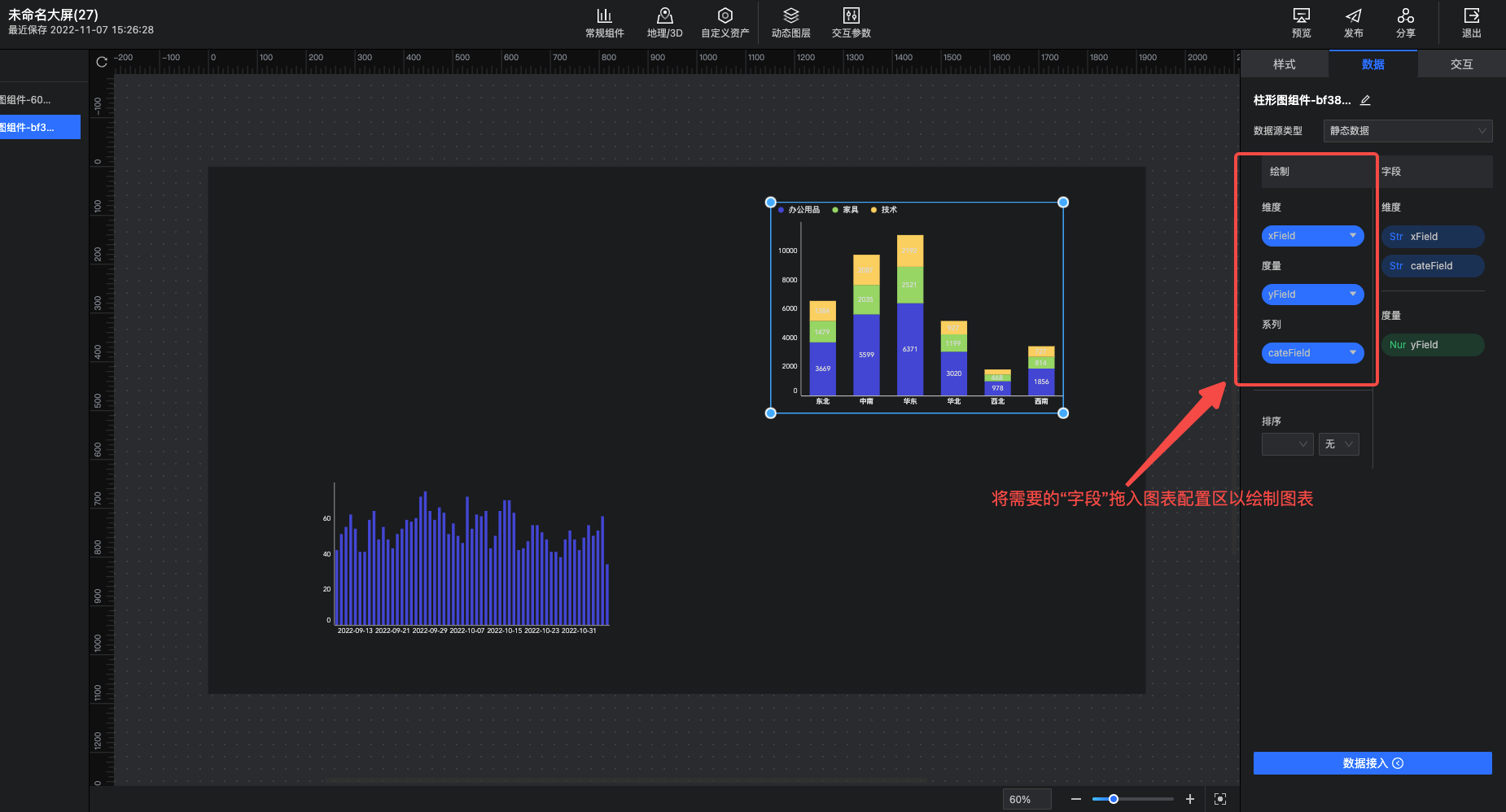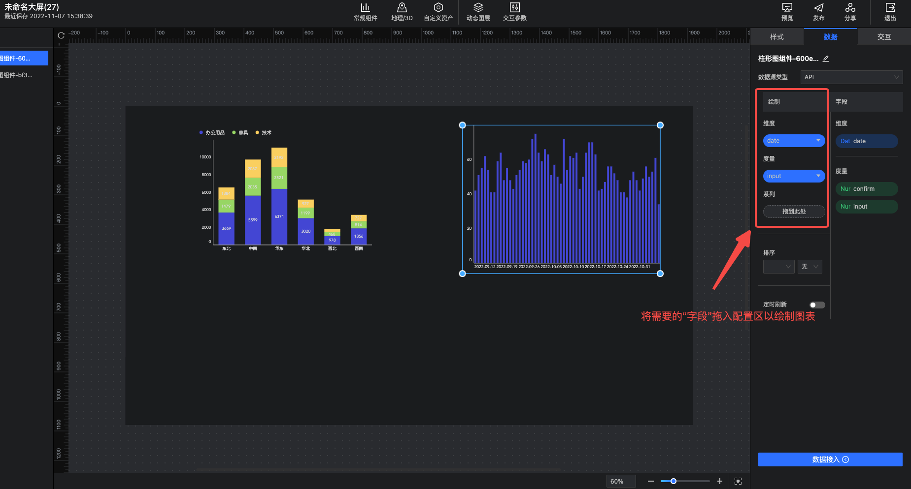 用户可根据需要,将字段拖入图表的配置区域以完成图表绘制。