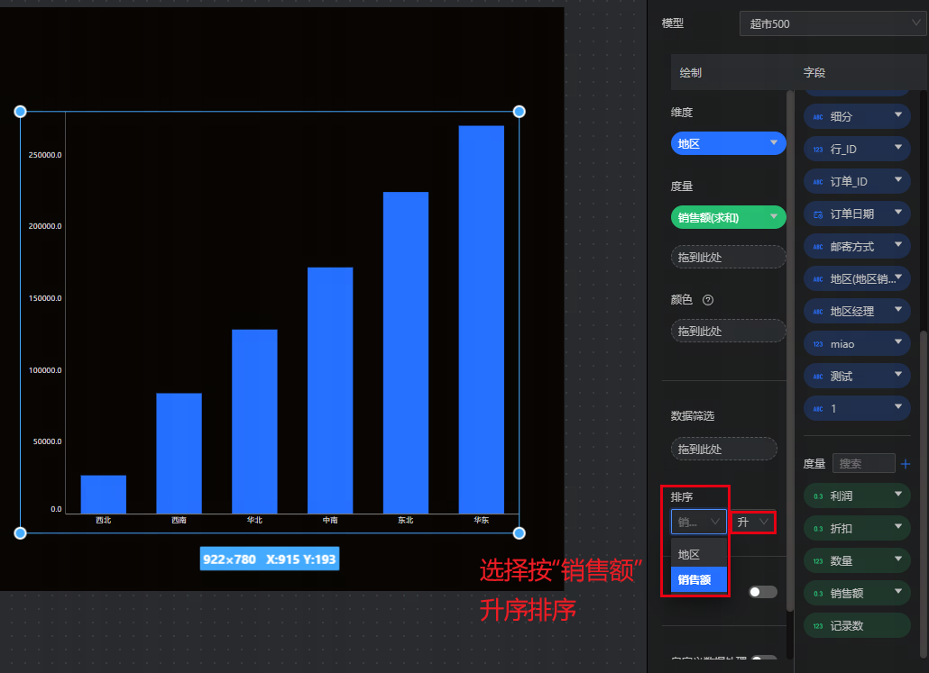 如有需要,客户可以设置“排序”以达成更好地可视化效果。