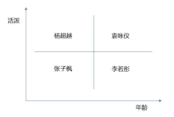 我是喜欢什么样的女生呢?矩阵分析法来帮忙。小选想了想,自己更在意女生的年龄和活泼度,于是建立了“年龄-活泼”的矩阵分析模型。