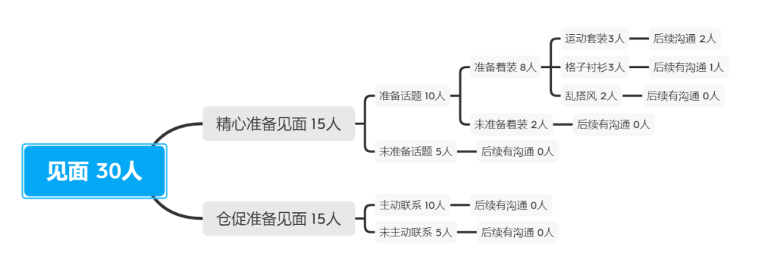 看来小选完成见面的比例还OK,但是后续还能保持联系的比例太少了!怪不得一直单身……