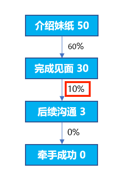 为啥聊过一些妹纸、但自己一直还单着呢?用漏斗分析法来看下自己的流程上有木有问题。小选按照下图对自己过往的妹纸见面史进行了梳理: