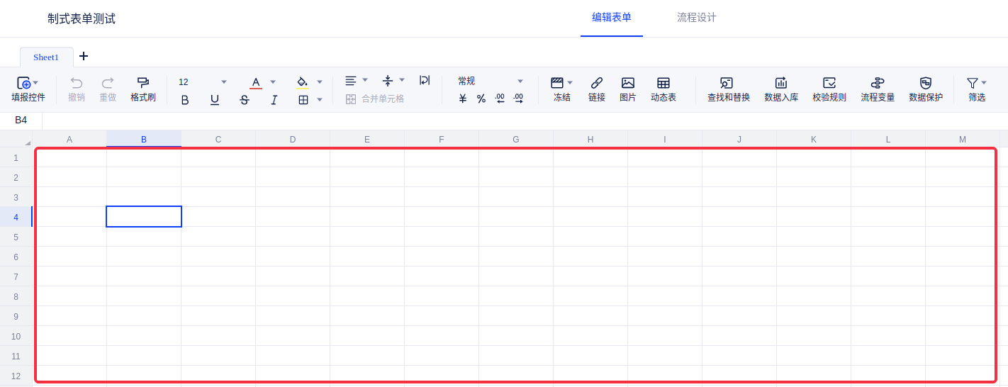 设计表单主体样式的界面,类似Excel表格,中间网格部分为表单单元格和行列。