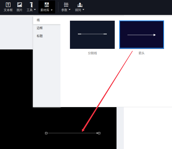 (1)点击“素材库”,选择“箭头”到画布;