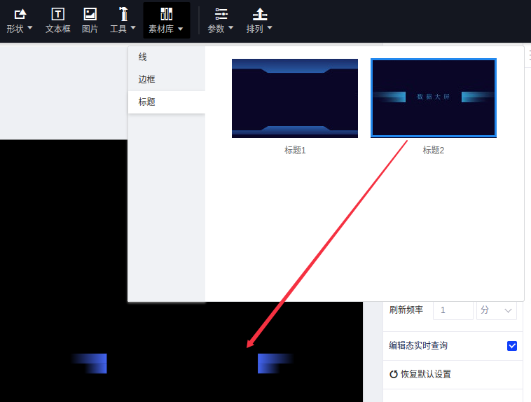 (1)点击“素材库”,选择“标题”到画布;
