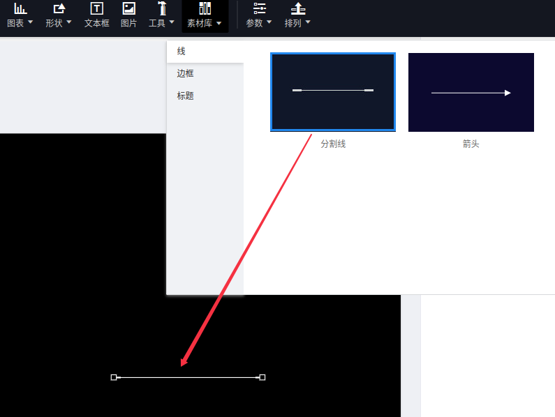 (1)点击“素材库”,选择“分割线”到画布;