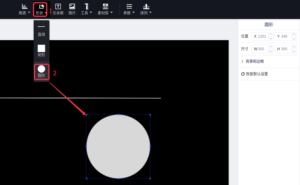 (3)在圆形的样式面板中操作其位置、尺寸、填充颜色、边框。