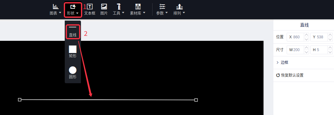(2)在画布中拖拽直线,控制其长度、角度和位置;