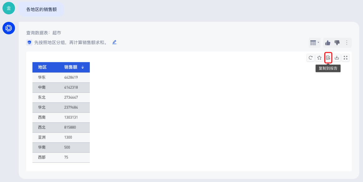 ChatBI智能回答的图表支持一键复制到有数BI的报告中