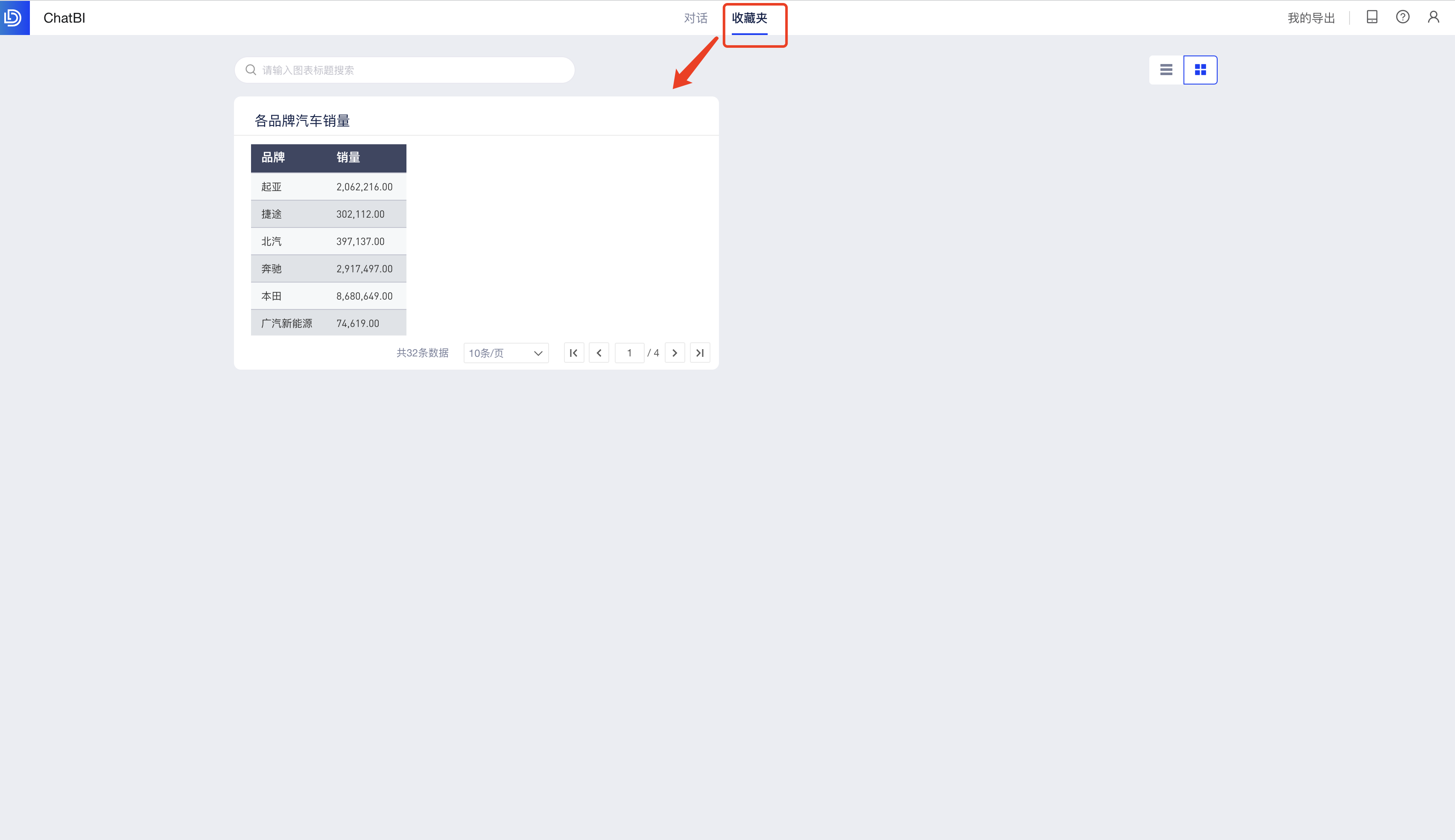 生成图表后,点击「收藏」按钮,即可将本次查询结果添加到收藏夹,下次可从收藏夹快速找到该图表。