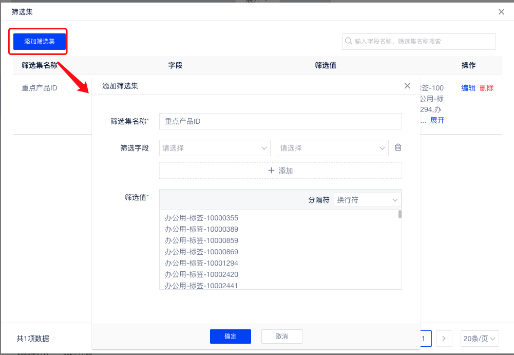 - 输入筛选集的名称;