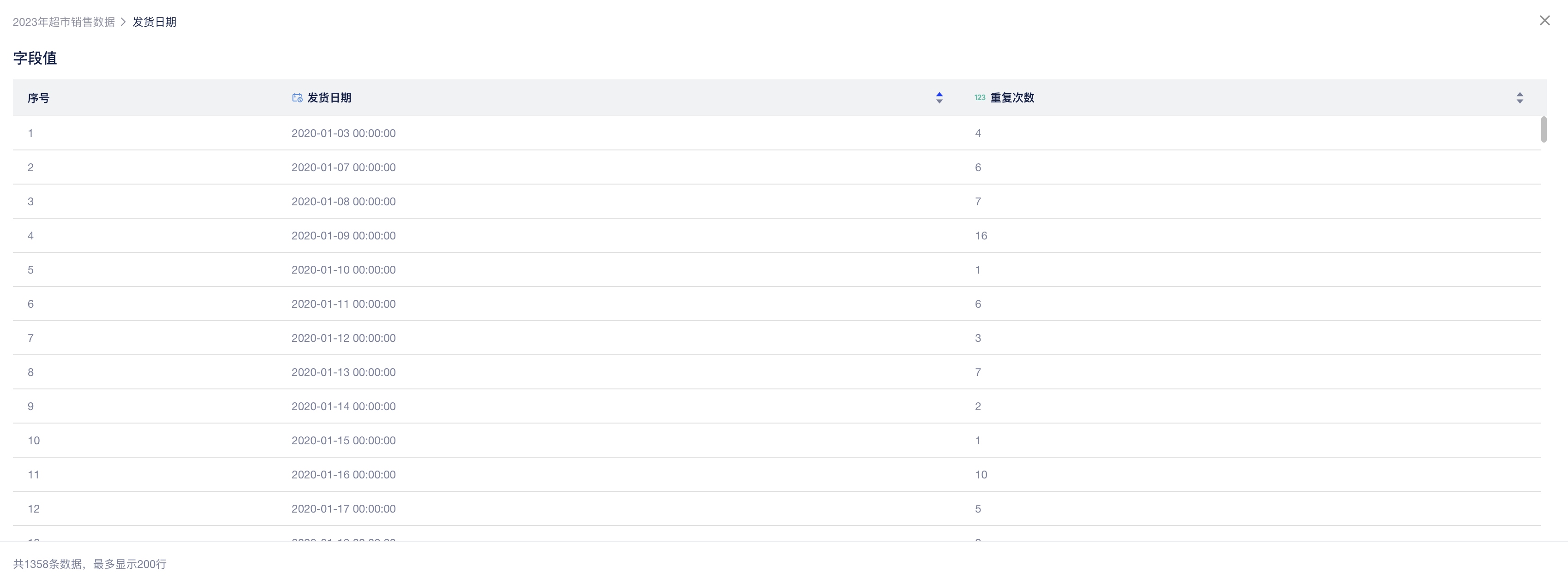 点击字段右侧的「查看字段值」按钮,则可对具体字段包含的值及分布