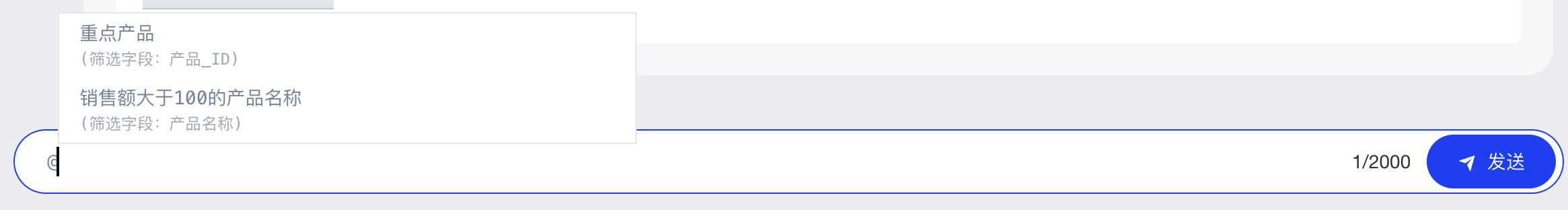在问答窗口输入“@”引用筛选集,若已定义多个筛选集,则从中选取一个;