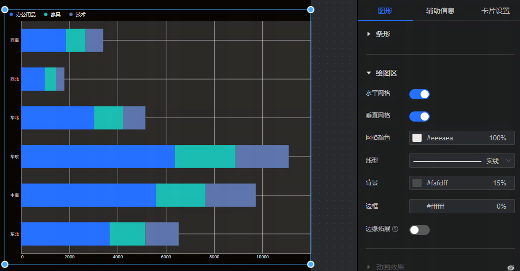 - 图例:设置条形图是否要展示图例,以及图例的展示位置、文字样式。