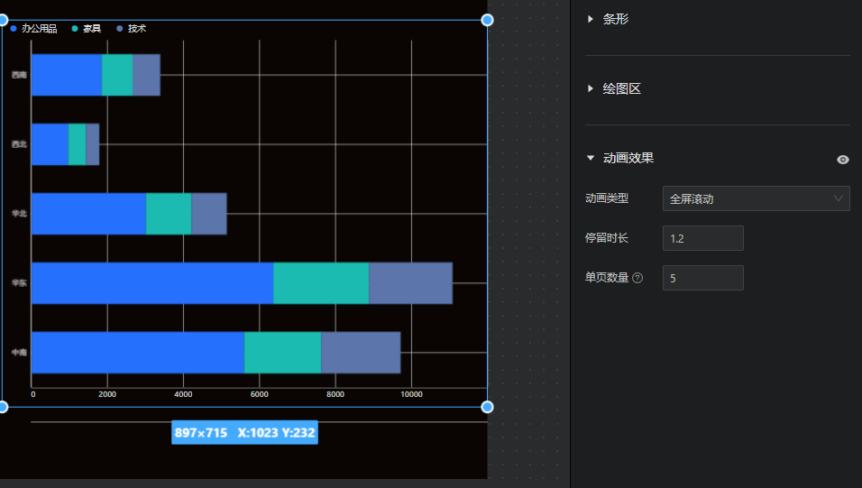 - 动画效果:设置条形图的轮播效果。