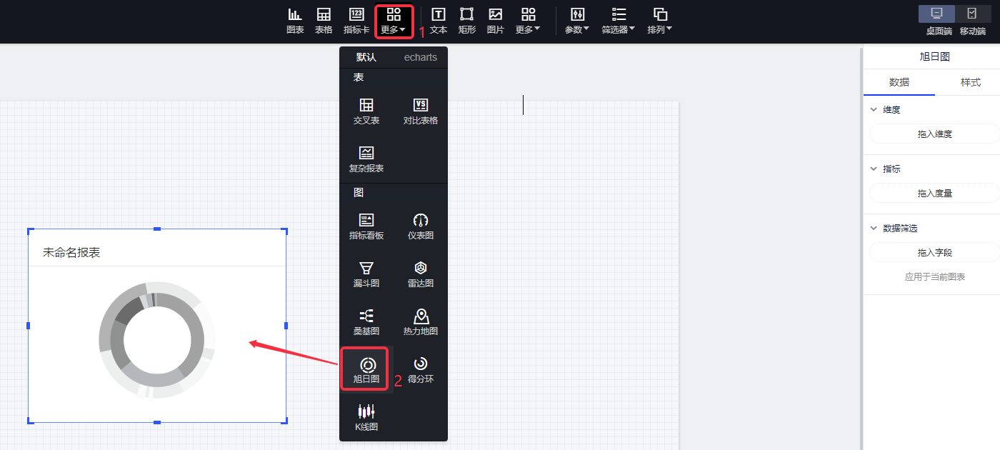 (1)在画布上添加一个旭日图控件;
