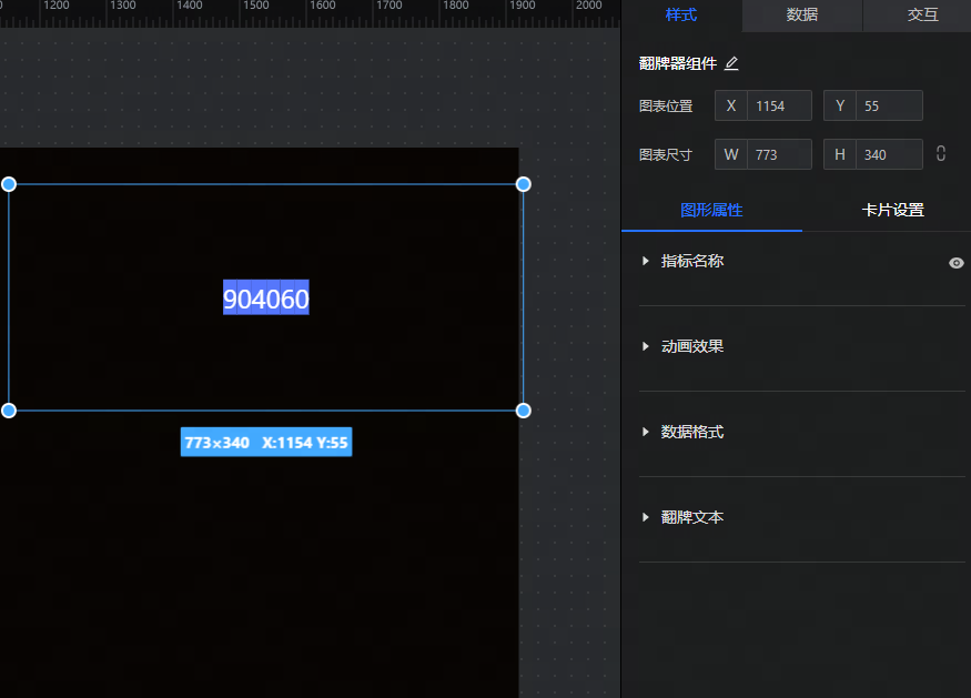 翻牌器的样式配置:分为图形属性、卡片设置两个子Tab,用户可以在这此调整颜色、字体、大小等。